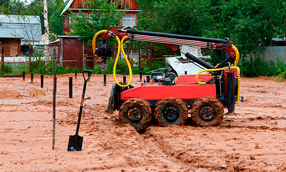 2. Установка винтовых свай: специальное оборудование используется для вкручивания свай в грунт до достижения требуемой глубины.