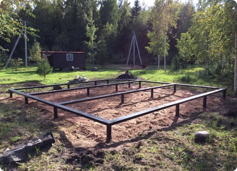 Используются долговечных стальные сваи с антикоррозийным покрытием ЭП-140, а обвязку выполняют профтрубой или двутавром. Для отделки применяют металлочерепицу, сайдинг и панельные системы, которые крепят к ростверку без дополнительной заливки бетоном. Такая схема позволяет провести монтаж кровли и стен мгновенно после завершения установку каркасы.